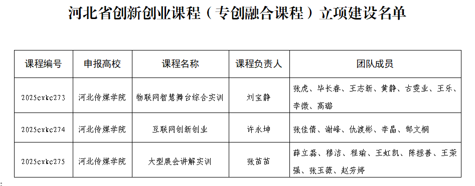 近日,河北省教育厅印发《关于公布2025年省级创新创业课程、教改项目立项建设名单的通知》,我校有3门课程获批省级创新创业课程,5个项目获批省级创新创业教育教学改革研究与实践项目。截至目前,我校已累计获批省级创新创业课程12门,省级创新创业教育教学改革研究与实践项目10项。