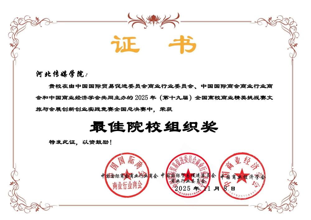 近日,第十九届全国高校商业精英挑战赛文旅与会展创新创业实践竞赛全国总决赛圆满落幕。我校文化产业管理学院参赛团队表现出色,共荣获全国一等奖1项、二等奖5项、三等奖8项,学校获“最佳院校组织奖”,创下参赛以来的最佳成绩。